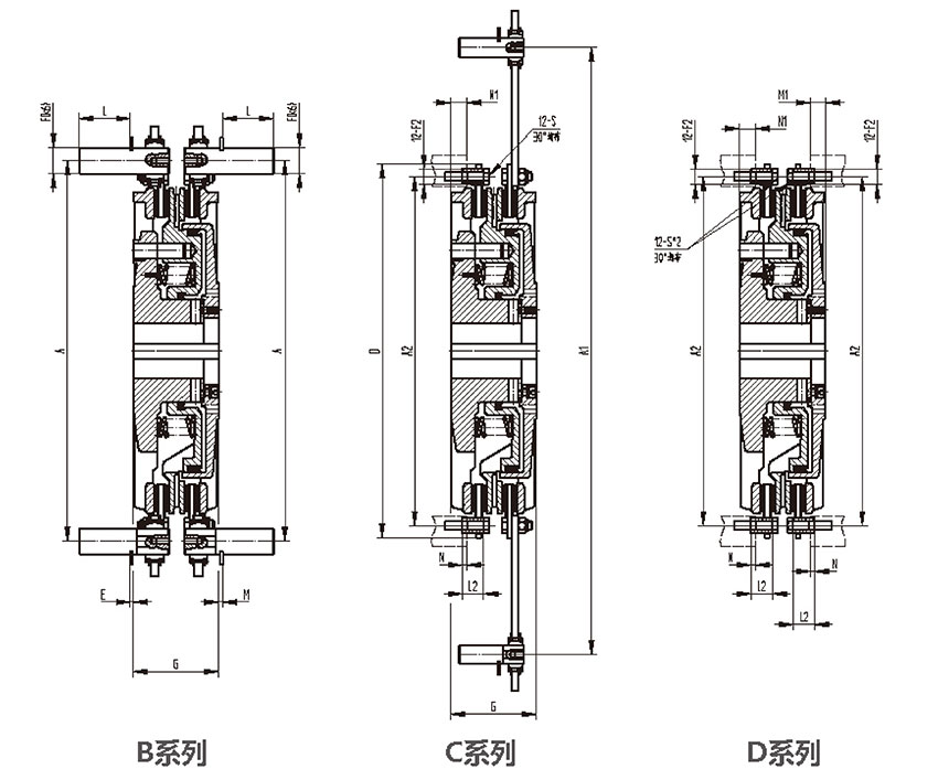 | 型號(hào)參數(shù) | H1 | I | J | K | K1 | L | L1 | L2 | M |